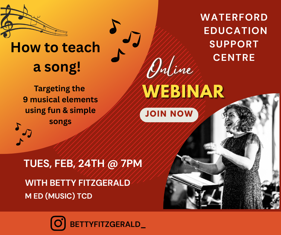 This practical CPD webinar supports primary teachers to teach music through simple, engaging songs aligned with Department of Education priorities. Teachers will learn how musical skills develop naturally through singing, while nurturing children’s creativity, self-expression, and artistic engagement. The course demonstrates how simple songs can be used to explore key musical concepts from the new Primary Music Curriculum—such as pulse, tempo, rhythm, pitch, dynamics, timbre, texture, and structure—while encouraging children to use their bodies and senses as instruments.